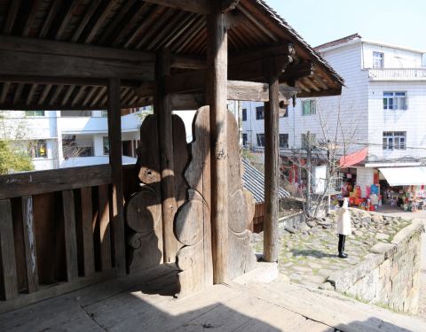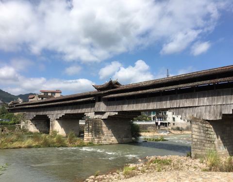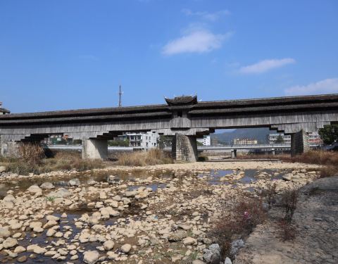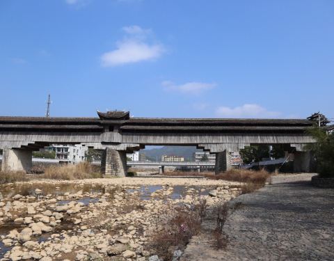 是浙江省保存最好最长的桥。该桥为木石结构的廊屋桥,全长125.7米,其下砌石墩5座,4孔