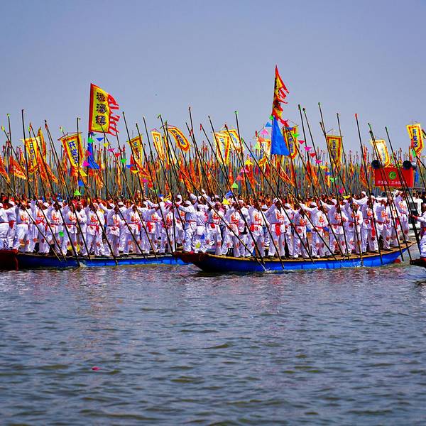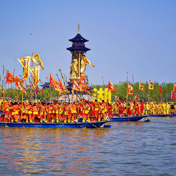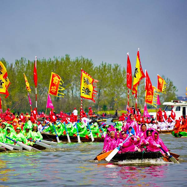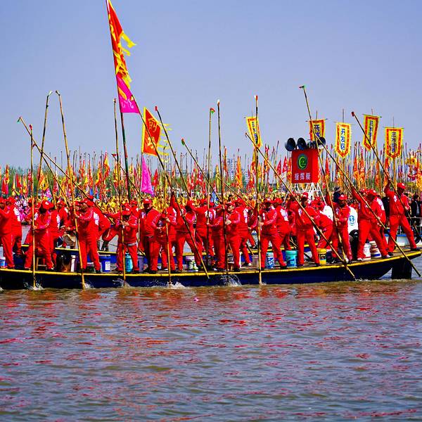 随缘处之,幸运得见!相较于寻常的山水风景,这样一年一度的民俗风情活动,更值得观赏,耐人寻味清明之后,姜堰人迎来了一年中最为盛大的节日:溱潼会船节。一方水土,孕育一方人。溱潼水乡,因水而灵动。同端午节多地有龙舟竞渡比赛传统相仿,在江苏姜堰的溱潼一带,自宋代以来,就一直流传着一种古老的民间...清明之后,姜堰人迎来了一年中最为盛大的节日:溱潼会船节。一方水土,孕育一方人。溱潼水乡,因水而灵动。同端午节多地有龙舟竞渡比赛传统相仿,在江苏姜堰的溱潼一带,自宋代以来,就一直流传着一种古老的民间会船活动。在2007年,溱潼会船节被列为全国首批非物质文化遗产,成为中国十大民俗节庆活动之一,因而蜚声在外。虽然错过了江南春花烂漫的时节,却巧遇世界上规模最大的水上庙会:溱潼会船,有失有得,焉知非福?随缘处之,幸运得见!据悉,溱潼的会船节是最初是因当地人为了感恩岳家军英勇抗金,守护了溱潼一方乐土,故而在清明节之时,自发的撑船到此祭奠抗金英雄岳飞和岳家军的亡灵。渐渐的出现了清明节撑船争先扫墓、祭奠英魂的现象。久而久之,由此逐渐演变为一年一度的溱潼会船节。千百年来,代代相传,不曾间断。一个风和日丽的上午,在溱湖会船码头,一场盛大的民间会船拉开帷幕。千舟竞发,百舸争流,万人观礼,盛况空前。水乡之韵,美如画卷。民俗乡情,雅俗共赏。这场盛大的水上庙会,能如期举行,并非一人的功劳,而是成千上万个平凡的姜堰人。听当地人说,距离溱潼会船举行十日之前,当地参加会船的乡村就会开始挑选比赛用的会船、篙手、划手上船试水,在训练“齐号”直达参加比赛。在溱潼会船节当日,成千上万的民众涌入观礼台。当舞台上精彩的民俗演艺结束之后,随着一声巨响礼炮直冲云霄,五彩缤纷的烟雾弥散开来,溱潼会船比赛就正式开始。首先,驶入会船舞台中心湖区的是祭祀船, 紧随其后的是几艘代表当地文化、经济、生活的贡船。其次,就是一艘紧接着一艘逆流而上的龙舟。最后,就是溱潼当地的篙子船,彩旗拂荡,干篙起舞,鼓乐喧鸣,万呼众应。溱潼会船是一场水的盛典,船的聚会,人的拼搏。相较于寻常的山水风景,这样一年一度的民俗风情活动,更值得观赏,耐人寻味。 展开