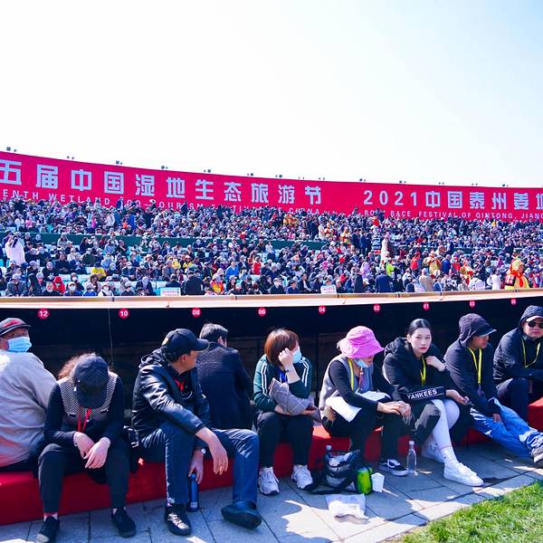 清明之后,姜堰人迎来了一年中最为盛大的节日:溱潼会船节。一方水土,孕育一方人。溱潼水乡,因水而灵动。同端午节多地有龙舟竞渡比赛传统相仿,在江苏姜堰的溱潼一带,自宋代以来,就一直流传着一种古老的民间会船活动。在2007年,溱潼会船节被列为全国首批非物质文化遗产,成为中国十大民俗节庆活动之一,因而蜚声在外。虽然错过了江南春花烂漫的时节,却巧遇世界上规模最大的水上庙会:溱潼会船,有失有得,焉知非福?随缘处之,幸运得见!据悉,溱潼的会船节是最初是因当地人为了感恩岳家军英勇抗金,守护了溱潼一方乐土,故而在清明节之时,自发的撑船到此祭奠抗金英雄岳飞和岳家军的亡灵。渐渐的出现了清明节撑船争先扫墓、祭奠英魂的现象。久而久之,由此逐渐演变为一年一度的溱潼会船节。千百年来,代代相传,不曾间断。一个风和日丽的上午,在溱湖会船码头,一场盛大的民间会船拉开帷幕。千舟竞发,百舸争流,万人观礼,盛况空前。水乡之韵,美如画卷。民俗乡情,雅俗共赏。这场盛大的水上庙会,能如期举行,并非一人的功劳,而是成千上万个平凡的姜堰人。听当地人说,距离溱潼会船举行十日之前,当地参加会船的乡村就会开始挑选比赛用的会船、篙手、划手上船试水,在训练“齐号”直达参加比赛。在溱潼会船节当日,成千上万的民众涌入观礼台。当舞台上精彩的民俗演艺结束之后,随着一声巨响礼炮直冲云霄,五彩缤纷的烟雾弥散开来,溱潼会船比赛就正式开始。首先,驶入会船舞台中心湖区的是祭祀船, 紧随其后的是几艘代表当地文化、经济、生活的贡船。其次,就是一艘紧接着一艘逆流而上的龙舟。最后,就是溱潼当地的篙子船,彩旗拂荡,干篙起舞,鼓乐喧鸣,万呼众应。溱潼会船是一场水的盛典,船的聚会,人的拼搏。相较于寻常的山水风景,这样一年一度的民俗风情活动,更值得观赏,耐人寻味。