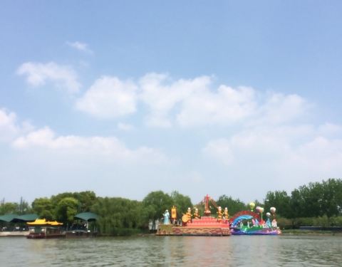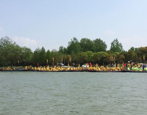 湖面开阔,虽说不是周末,但是也是五一小长假。没有看到大规模的会船,只有几艘彩船在湖面上巡游。需要人力撑船的都在湖边歇着了。没有看到大规模会船略有失望。