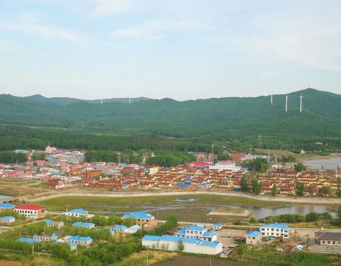 由于时间紧,车直接开到山上的津街口哨所,俯瞰黑龙江及对岸俄罗斯的大片湿地,这里不像东极广场,可看见对方的建筑。反方向就是赫哲村,目前正在修主干道,要绕行。我方一侧沿江是郁郁葱葱的山脉,山上的风力发动机成了一道靓丽的风景。可惜没去我向往的钓鱼台,自然也就错过了那坐吊桥。下次去补上!