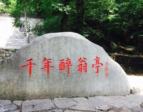 现在的醉翁亭记里都写着酿泉为酒,但其实为误传,正确的是让泉为酒,毕竟题字放在这里。原名玻璃泉。在琅琊山醉翁亭下。北宋文学家欧阳修《题滁州醉翁亭》赞其:“声如自空落,泻向两檐前。流入岩下溪,幽泉助涓涓。响不乱人语,其清非管弦。岂不美丝竹?丝竹不胜繁。”清康熙年间知州王赐魁立碑泉侧。泉水清澈寒例,甘醇可口,四季不竭。