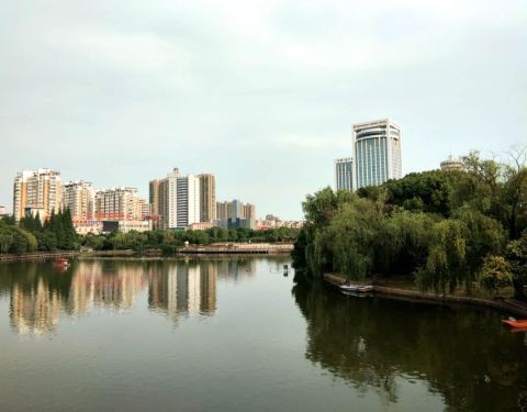 雨山湖算是市中心的绿化带,它就在金鹰百货的旁边,跟南湖公园距离很近