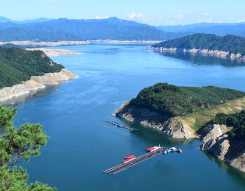 水丰湖景区既有北方山水的雄浑壮美,又具有江南山水的清理恬淡,沿岸青山植被完好,仍保持着原生状态