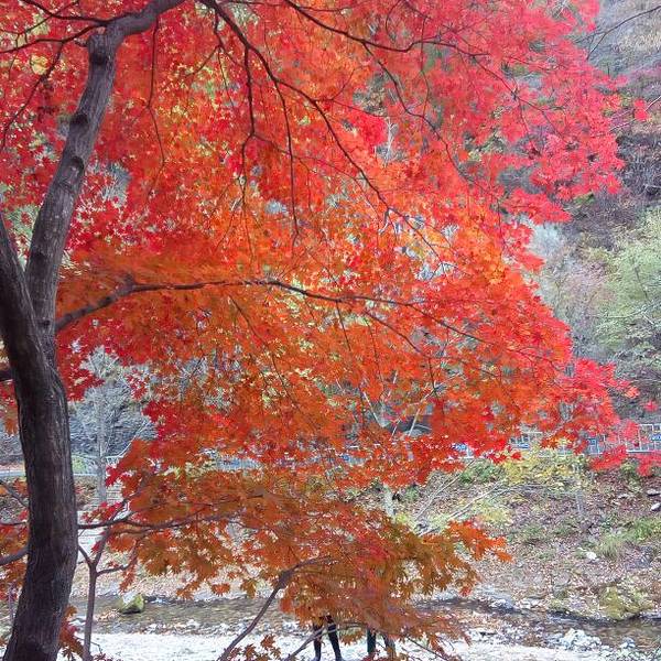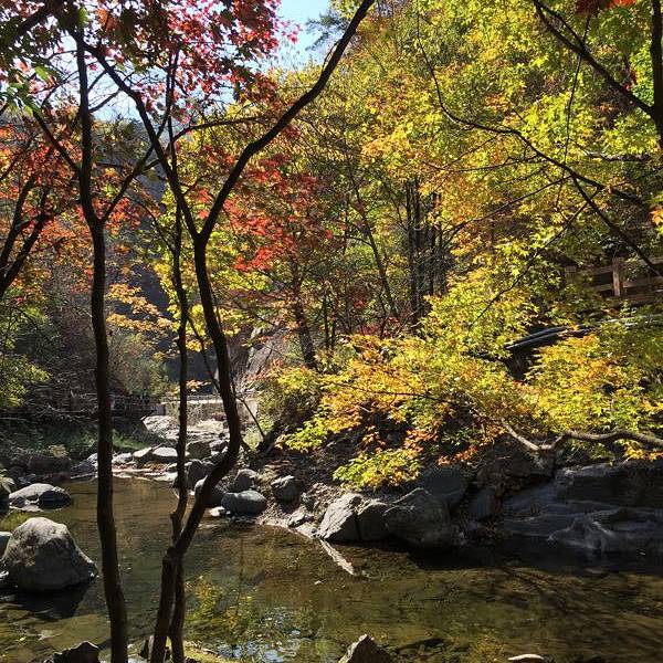 非常累,山很陡,溪水清澈,枫叶很好看