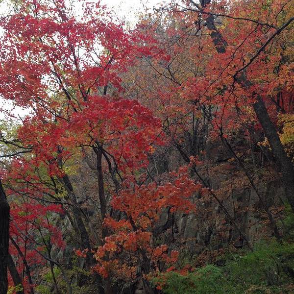 关门山国家森林公园位于本溪满族自治县南部,这里山峰奇峭、怪石林立,素有“东北小黄山”的美誉。 关门山国家森林公园内有峡谷和小河贯穿,夏季的雨后可来观溪瀑和满山葱翠,是避暑的好地方,即便是水少的季节也有小溪常伴左右。而秋季五彩缤纷的树叶则是关门山国家森林公园的招牌景致,尤其是深秋时满山火红的枫叶尤为迷人,是东北地区有名的赏枫摄影胜地。 关门山国家森林公园里分为小黄山、夹砬子景区、龙门峡景区、月台子、鸣翠谷景区、关山湖等几个小景区,每个小景区要想基本玩全,都需耗时3-4小时。虽然公园内山并不太高,但游览路线很长,所以要想节约时间和体力,可以适当地乘坐景区游览车,但黄金周时中途很难搭到有空位的游览车。 小黄山景区是整个公园的风光精华,比较经典的线路是:小黄山入口-木兰谷-五彩湖-枫之海-好汉坡-龙脊岭-通天门-小黄山出口(即入口),此线路全程步行加爬山,耗时约4小时,对体力较为考验。也可以搭游览车到龙门峡景区,从龙门峡景区开始步行,线路为:夫妻树-晶帘瀑布-龙门峡口-转心湖-红松林-枫之海-好汉坡-龙脊岭-通天门-迎客峰-小黄山出口-木兰谷-五彩湖,在五彩湖搭车出山,全程耗时约5小时。 要是有两天时间,建议第一天游览小黄山景区、龙门峡景区、夹砬子景区三个景区,主要以爬山为主;而第二天可去月台子、关山湖,如果来得及还可去鸣翠谷景区,主要为山林徒步。去月台子、鸣翠谷景区的游客通常不多,但这里的景致相对更为原始,也更为幽静。景区内有宾馆可提供住宿,也有按铺位计价的火炕房,都需要致电景区提前确认与订房。 如果专程来赏枫,每年九月中旬至十月上旬是较好的赏枫时节,此时这里的枫叶一片火红。如果想拍出好的红枫照,尽量选择阳光灿烂、能见度好的日子。不过,赏枫季节的游客也是相当多,尤其是国庆长假期间。需要注意的是,由于气候情况不同,每年的枫叶变红及凋零的周期也可能变化,建议来之前提早关注一下景区官网资讯,如果来晚了就只能看枯枝了。 关门山国家森林公园里有几个赏枫摄影点:小黄山景区的“枫之海”,这是小黄山景区顶部的一个景点,这里枫树面积大,每到秋季就像枫叶的海洋,在早上有雾时更是犹如仙境;夹砬子景区的“五彩湖”,每到秋季,黄的柞树、绿的青松、红的枫树,它们的倒影映衬在水里边,相当迷人。