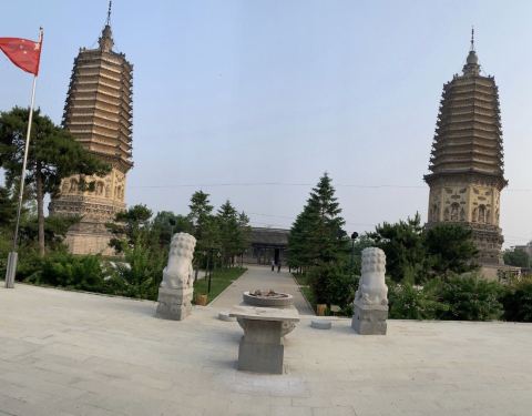 双塔相距43米,是我国境内唯一的辽代对峙式大型双塔,也是我国三千多座古塔中一对著名的姐妹塔。从塔的结构和风格看,应属辽代中晚期的遗物。人不多,我们很喜欢这里。
