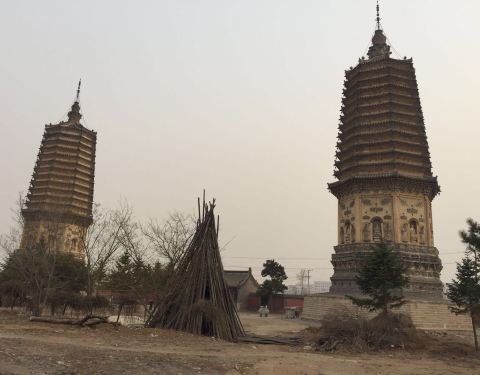 就这样还要门票(5元),索性不进去,在外面看看得了。西塔高42米,均为八角十三层密檐式实心砖塔