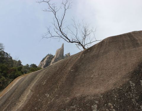 三清山景点之一,从金沙索道下来前行约五百米左右可以看到,是一组山峰的总称,其中有一座纤细修长,形如女性,旁边的成围坐,仿佛乐匠弹奏古曲。