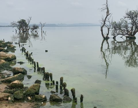 柳林沙滩湖水倒映绿柳,秀丽妩媚。滇池水质不怎么样,但这片沙滩很不错