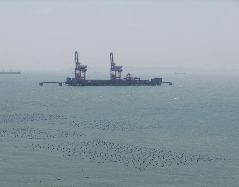 西绿华南码头有旅馆,叫望海宾馆,老板娘姓金,土生土长西绿华人,50出头。 虎头鱼在浪小的时候可以在礁石上钓。 东绿华以前大片的青松不见了,被大片的竹林自然取代。 著名的国际锚地,见照片。 几个山头在建风力发电站。 渔业严重萎缩。 没有雾霾,晚上可以看见星星。