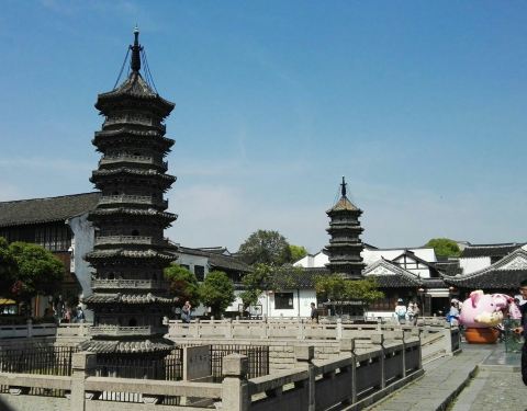 双塔是南翔古镇的标志,因为年代久远,能完整的保存下来真的不容易双塔是南翔古镇的标志,因为年代久远,能完整的保存下来真的不容易。不是真的塔,而是以前云翔寺原址寺门口的两个装饰性的砖塔。