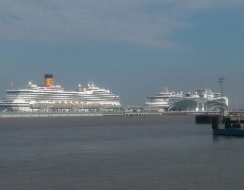 在上海东北角上的宝山有个临江公园,绿化好,山水好,风景好,非常值得家庭游玩的好去处,长江两岸,邮轮码头,人们在这里享受着江风美景。