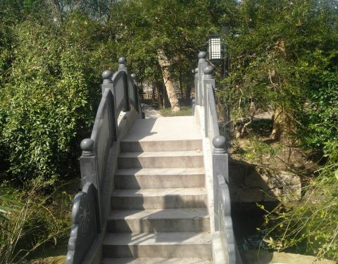 公园不大,绿化还行,有健身步道、假山和流水等常规布置