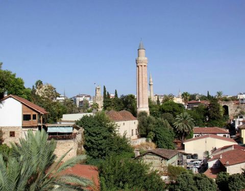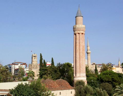 尤利·米纳雷利钟塔位于城中心,典雅的像长笛形的尖塔,是典型的塞尔柱帝国时期的建筑风格,花瓣形状的截面很有特色,宣礼塔下就是清真寺,钟塔成为安塔利亚的标志性建筑,迷失方向可作参照物……