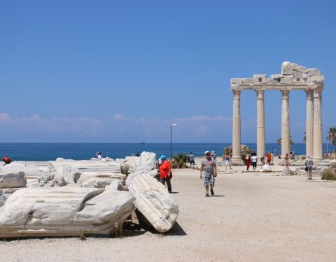 锡德古城是安塔利亚规模最大的罗马时期的古城遗址,它建在地中海边,现在还遗留几处圣殿的立柱和城墙的遗迹锡德古城是安塔利亚规模最大的罗马时期的古城遗址,它建在地中海边,现在还遗留几处圣殿的立柱和城墙的遗迹,看着规模十分的宏大,可想当时这里是有多么的繁华,而现在只剩下残垣断壁,令人感叹着历史的沧桑。
