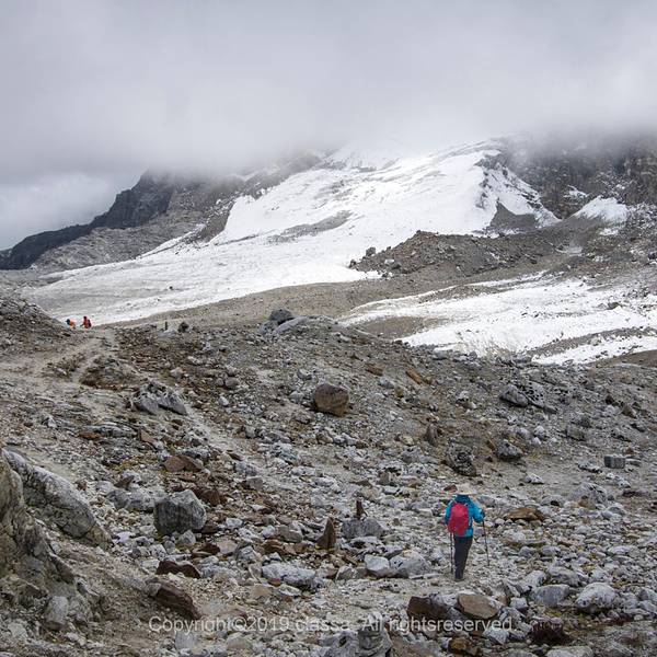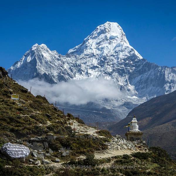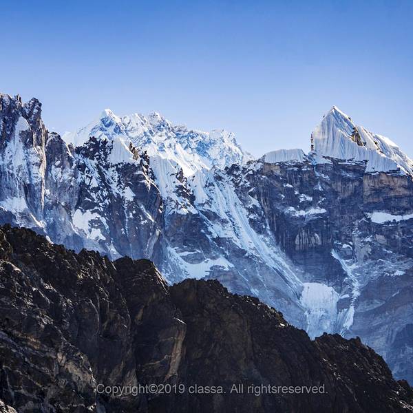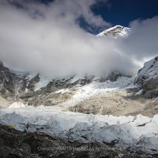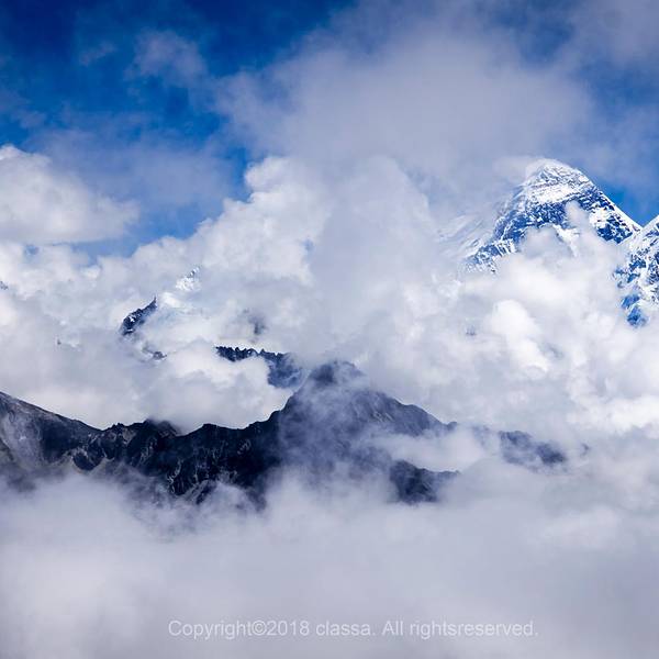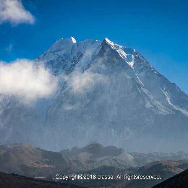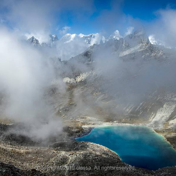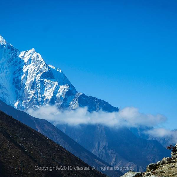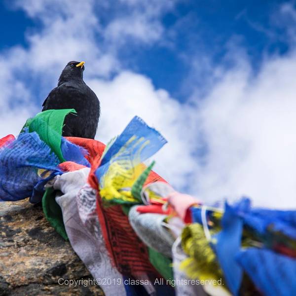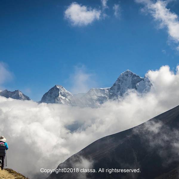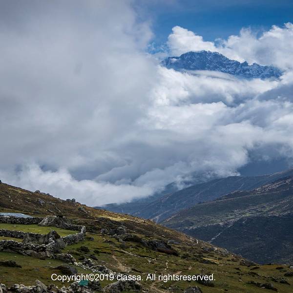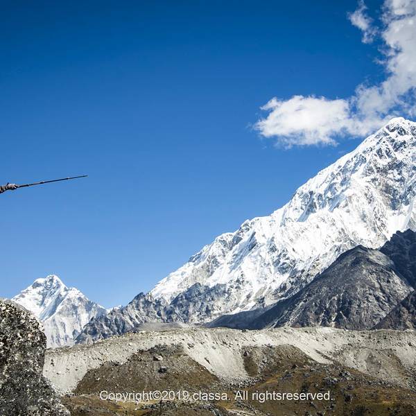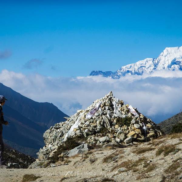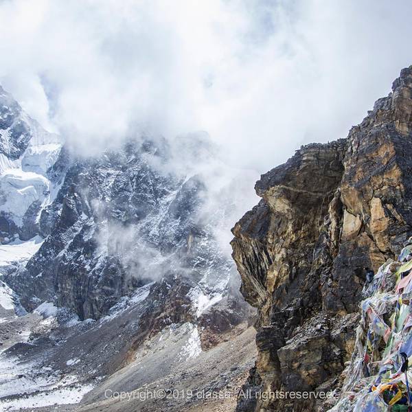 2018年12日,一纸公告将世界之巅,位于中国和尼泊尔边境线上的喜马拉雅山最高峰,珠穆朗玛峰推到世人的眼中。多年以来,大批登山者还有游客在登山或者游览期间留下了大量的垃圾。为了保护高原脆弱的生态环境,从绒布寺以上的珠峰自然保护区开始禁止进入了。当然,每年国家还是会开放一些登山的名额。但是,对于游客来说,以前的可以到达的海拔5200米的珠峰大本营已经禁止了,大家只能下撤到几公里外,海拔5150米的绒布寺来远观珠峰了。至于有多大的差别,可能要仁者见仁了。不过可以肯定的是世界上海拔最高的邮局是没有了。那个停留在我的本子上的2015年的邮戳,伴随着中秋月夜珠峰,清晨日出珠峰的记忆成了永久的纪念。当国内珠峰大本营关闭的消息传来,虽然绒布寺到大本营只有短短的8公里,但是这段距离仿佛天堑一般成了很多人永远不能翻越到障碍。想起来到真有几分“几家回忆几家愁”的味道。去过的都成了珍藏的回忆,没去的留下更多的遗憾。越来越多的人开始寻觅新的主峰的观景点。这时,主峰的另一侧,位于尼泊尔境内的主峰南坡大本营走入了大家的视野。这里也成了目前观珠峰最佳的地点了。说起来,之所以踏上EBC这条路线,我更多的是想看看不一样的珠峰。传统意义上的登顶珠峰,只有两个大本营,一个位于北坡,一个位于南坡。在完成国内大本营的行程后,南坡的行程也算是对自己的一个完美交代吧。今天是EBC行程的第五天,也是本次行程第一个艰苦的日子。因为我们要爬升1300米,翻越本次行程的第一个垭口,海拔5412米的renjo pass垭口。说来珠峰南坡北坡有很多相似的地方。其中一个就是都有两个观景的平台。北坡的两个观景台一个位于定日县刚进国家公园不远的山口,在此处你可以眺望整个国家公园内五座8000+的山峰;第二个观景台就在大本营,这里可以近距离的看到珠峰的全貌。与北坡相似的,南坡也有个全景的观景台,这个全景观景台就在renjo pass垭口。在垭口你能看到卓峰、洛子峰、卓奥友峰和马卡鲁峰。第二观景台呢自然就在珠峰南坡的大本营和旁边的卡拉帕泽山顶。说起renjo pass垭口,攀爬是有要求的。如果想看到上述提到的山峰,那就必须在上午十点半前到达垭口。当地想到告诉我们,如果晚于这个时间点,那么很可能你就要和山峰说再见了,因为届时云海会遮住所有的山峰。当日我到达垭口的时间是上午十点十分,云海已经充满了这些山峰的半山腰,而过了不一会,就像向导说的,我就被云海包围了。现在想起来,南北两个不同角度看这些8000+的山峰,观感还真不尽相同。卓奥友峰和马卡鲁峰还好,无非就是照片做了一下镜像,和手机前置镜头自拍一样的效果。而珠峰却略显不同,尤其是云海中出现了一条山脊,一路蜿蜒曲折延伸到了珠峰脚下。renjo pass垭口上面布满了随风飘动的彩色经幡,一只黄嘴山鸦落在了山石上,随着经幡的飘动眺望远方。过往的人群激动着,手舞足蹈着,欢笑着。漫天的云海随着风势漫布天际。在激动之余,此情景到有几分神秘,庄重。垭口两侧的道路都非常难走,一面都是落差超过五十公分的巨石台阶,而另一面直接就是碎石土路,最重要的是这两条道路的倾斜角度都超过了50度,可见有多么险要。看来,美景和风险永远是相扶相依的啊。renjo pass垭口仿佛是一道墙,将山两侧分割成了不同的风景。前一天住宿的村子叫做“lungdhen”,谐音过来就是伦敦。也是借景生情,这个村子每天有一半的时间是躲在云雾中,上午时分是山下的云海追着屁股跑,下午的时光就换成是一副望山不见山的样子了。而翻过垭口我们住宿的村子叫做gkoyo,颇有几分东京的音译。不过这里倒是比东京美多了,村口就守着一个碧绿湛蓝的湖泊,背后迎着连绵的雪山。如果海拔再低下去3000米,周围的草甸换成密林,那这里一定是一幅世外桃源的模样。同一片山域,确实两样不同的风景,看来山势海拔的变化还是影响了风景的不同。当然上山下山的心情也大不相同。上山时一路追赶,追的不是别人的脚步,而是云聚的时间。行色匆匆也就忽略了身边的风景,后头望时,碧石早已遗落在山间。下山时望着远处的湖水,映着隐约的雪山。一路蹒跚,几次跌倒也不觉得疼痛了。行走在天地间,不管是北坡还是南坡,珠峰只有一个,而对珠峰的向往,也只有一个。也许不同的只有一点,那就是不同的风景,不同的心情,也许这才是旅行魅力的根本所在。