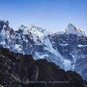 当你站定环视四周时,你才能够感到这种视觉的震撼。而不得不说,似乎大美风景总和艰难险阻是相伴的论语中有着这么一句话:“知者乐水,仁者乐山;知者动,仁者静;知者乐,仁者寿。”后来简化后也就成了“智者乐水,仁者乐山”。今天说到这句话,并不是为了深究其中之意。只是想简单地看看山水。随着生活水平的...论语中有着这么一句话:“知者乐水,仁者乐山;知者动,仁者静;知者乐,仁者寿。”后来简化后也就成了“智者乐水,仁者乐山”。今天说到这句话,并不是为了深究其中之意。只是想简单地看看山水。随着生活水平的提高,人们越来越向往走出自己熟知的环境,去探索新的领域。有些人爱水,喜欢波涛汹涌的壮阔,喜欢川流不息的跃动。而有些人则爱山,热爱山之稳重不迁,热爱山之巍峨险峻。也许我就属于爱山者,总感觉踏入大山之中才算真正的回归了自然。要说山,每个人心中都有属于自己的那座巅峰。而我心中的那座山,应该是属于喜马拉雅,属于世界上海拔最高的山脉,属于那片世界上最庞大的雪山群。走进喜马拉雅腹地已经是第七天了。从原始森林穿梭到高原穿越,在前几天翻越第一个垭口后,我们已经活动在海拔5000米好几天了。也许是习惯了这种节奏,即使有大的翻越攀升我们也适应了起来。经过前一天的休整,第五湖的美景还依稀在目,我们今天的任务是翻越第二个垭口:卓拉山口。垂直上升964米,越过海拔5368米的垭口,我们再一次置身在雪山环抱之中。在垭口之巅,我们周围分布着Cholo peak、Amadablam、Barunche、Labuche east等一众六七千米的雪山。当你站定环视四周时,你才能够感到这种视觉的震撼。不知道大家是否去过西藏的阿里地区,那里也是雪山环抱,期间散布着色彩斑斓的海子。但是和尼泊尔这边的情况,还是略有不同。西藏的阿里地区是喜马拉雅山脉和冈底斯山脉中间夹着的一块平原。走进阿里地区,你会发现雪山是分两个条状的分布在两边。而在尼泊尔,我们已经进去了喜马拉雅腹地,这里的雪山是360度无死角环绕包围着你。无论你面向何方,总有连绵的雪山进入到你的视野。不得不说EBC翻越垭口的路况实在是差的过分。在翻越第一个垭口Renjo Pass时,垭口两侧的路一侧时大的石板台阶,一侧是碎石土路,倾斜角约是50度的样子,一路上跌跌撞撞,几次摔倒才勉强完成。而今天第二个垭口的路则更加过分。暂且不提两侧的石块路有多难行,单说两侧攀升的角度接近65度,几乎是需要攀爬才能上升。据说后面第三个垭口更加过分,真的需要爬着上升。而不得不说,似乎大美风景总和艰难险阻是相伴的。翻越了这个垭口,也就迎来了视觉上的盛宴。刚从垭口下来不久,我们就要横穿一条冰川。在冰面上行走,将近一公里的长度,虽然不是如履薄冰般小心翼翼,但也需要压抑内心激动的心情,不敢大步行走。从山顶往下看,冰面上的人群,三三两两的仿佛白色海洋中的小蚂蚁。在白色海洋的周围,是延绵至顶的冰川,灰色的山峦和密布的巨石。在翻越垭口后三公里的位置,大美的风景就藏在了这里。眼前的雪山群连绵的仿佛一道屏障,阻断了大地和天空的联系。一条冰川融水汇成的河流流向远方。其间散布着零星的湖泊,碧绿的洒落在黄色的大地上。这时候的云层已经不再高高在上,悬浮在半山腰处仿佛触手可及。此时的雪山颇有几分花朵的意思,不觉间争芳斗艳起来。有的似金字塔一般高耸伫立,有的则断崖切面一般平滑整齐;有的在白雪覆盖中露出岩层,苍劲有力直插云霄,有的则被冰川环绕,白色飘带横贯于身分外妖娆。科普了下,喜马拉雅山脉有110多座海拔7350米以上的雪峰。而整个山脉的平均高度也超过了6000米。在这片雪域中,人总是显得渺小。但即使再渺小,只要你有一颗勇敢的心,雪山环抱就不再遥远。 展开
