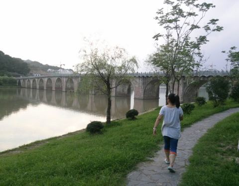 很美的桥,晚上乘凉的好地,桥上还有人钓鱼,美中不足的是桥下的水不清,比起千岛湖,那是不行的,不...