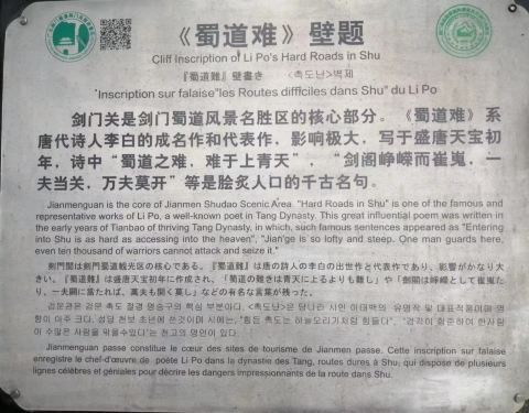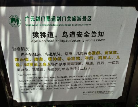 自古蜀道非常陡峭险峻!剑门蜀道如今是有名的景点!行走在步行栈道,穿山越岭,欣赏了蜀道得自然风光,感受了蜀道的历史文化遗迹!