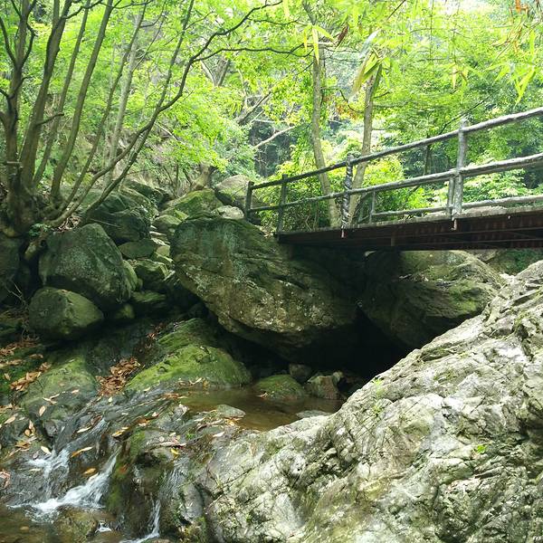 宁波五龙潭景区位于宁波市区西南,离城市不远,却能欣赏到不错的山野景色。顾名思义,景区内很大的看点是五处潭水,伴着四周苍翠的山峦,夏秋季节清爽宜人。山不高不矮,正适合散散心。景区目前已开发的龙潭飞瀑观光区,看的便是五井龙潭、山间的溪流瀑布,以及古祭龙坛等景观。游览时可全程步行往返,也可乘坐景区内的观光车至半山腰处三井龙潭附近的游人广场,由此开始步行上山比较轻松。若是全程步行至此,看景走路大约需要1小时。景区入口处的广场上有个妇人和四个孩子的雕像,讲的是关于五龙潭来历的传说。由此顺着游步道的指示牌往溪谷深处走,步行大约40分钟后,远远可见山岩上巨大的红色“龙”字石刻,石刻前的大瀑布倾泻而下,叫做“百丈瀑”。到了这里,前方不远便是五龙神堂,在此就能隐约听到前方潭水和溪流声了。后面的游程中,顺着游步道往山上走,便可依次游览五井龙潭。道路并不十分平坦,但也不算太难走。按顺序依次是孚泽潭、昭泽潭、润泽潭、白龙潭、赤龙潭。虽说都是飞瀑和潭水的组合,但它们形态各异,潭水也有的碧绿有的蔚蓝。许多人觉得第四井迷人,而第五井有气势。第五井的水流并不像其它瀑布是直流下来的,而是在两块巨石之间的空洞中左右激荡,最后落入潭中。四、五井龙潭之间有个竹廊茶室,走累了可以在此喝喝茶,歇歇脚。夏天还时常能见到游人在溪边玩水、洗脸,很是清凉。第五井再往上走一段,到潭水源头处有一个祭龙坛,是当地人祈求风调雨顺的地方。虽是新修的,但耸立的龙型图腾柱也有几分气势。坛前有香炉,游人也可在此祈福。大多数人会在祭龙坛折返下山,若是步行上山的,推荐回到观光车站乘车出景区,省时省力,也不必走回头路。