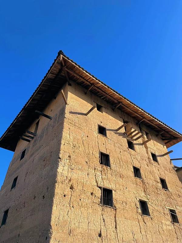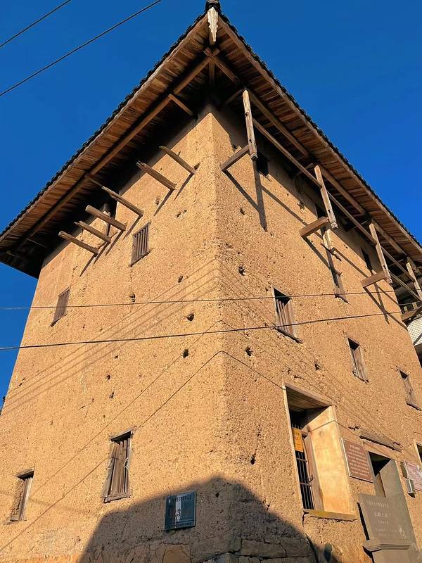 站在泰顺土楼下,望着高昂的黄夯土墙高楼,那一抹色彩,在阳光照耀下,格外引人注目!古老的东西在如今反而显得时尚起来,五层楼的下洋寨土楼和四层楼的半月坵土楼,始建于民国1936年,土石木结构,经过两三年建造完成。每层楼四面都设有瞭望眼、射击孔、消防水道,是当年谢氏族人避难的场所,一栋可隐避两三百人。
