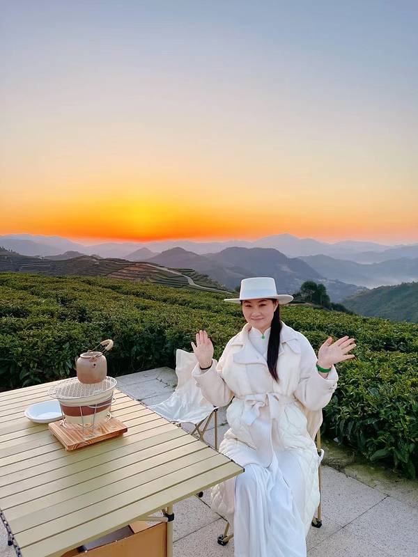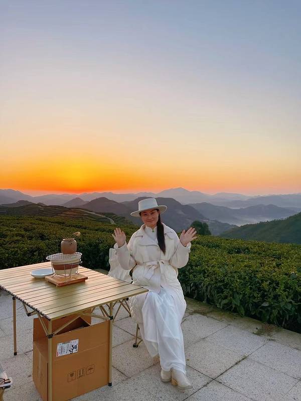 初春的清晨,茶山上温度很低,冻手冻脚的寒冷,但是充满期待的心总是火热的。车子停在茶山脚下,沿着石路上去便是茶山观景台。木质观景台错落在茶山上,当下时尚的围炉煮茶,配上绝美的茶山日出日落,闻着自然宜人的空气,天然的氧吧。于此冥想发呆品茗论道,都是惬意的时光。