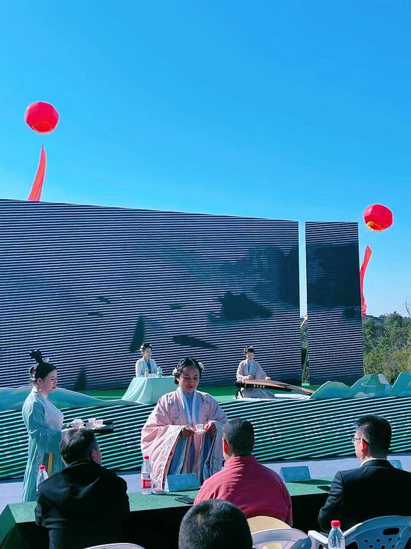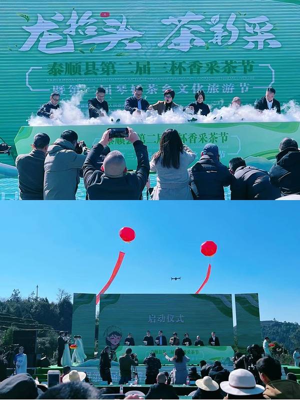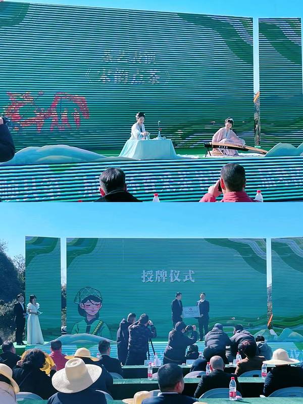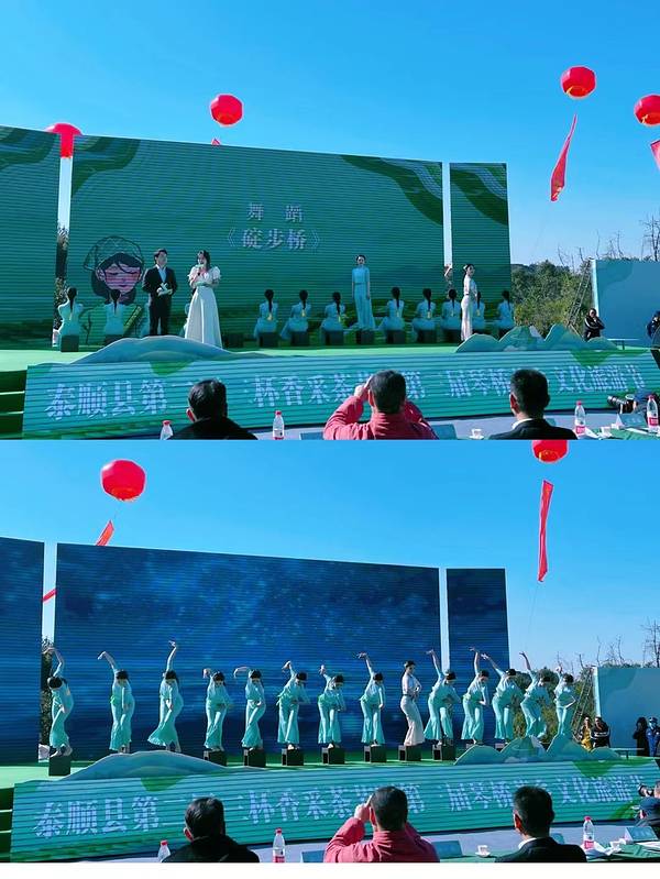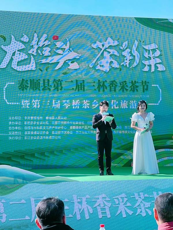 舞台上节目闪闪发光,有起源于此的采茶舞曲,有古典雅致的宋韵点茶茶艺表演,有多人组合演唱“茶约三杯香”,有春晚c位的碇步桥舞蹈,有泰顺名片“我在廊桥等你”的演唱,更有非遗传承文化项目碇步龙的震撼表演!随着一声令下,启动仪式开启,还有授牌仪式。祝福泰顺风调雨顺,三杯香香满天下!春有约,花不误,岁岁年年不相负……