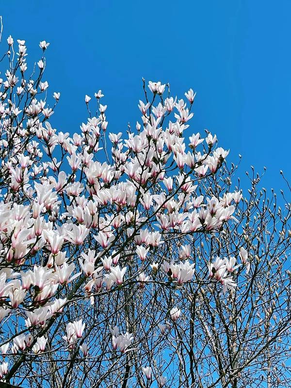 我这个花痴不禁驻足观赏,白玉兰是著名的早春花木,有“应春花”、“望春花”等别名。白玉兰的花语是纯洁的爱,真挚的爱,高贵出尘。因为它的花朵纯洁无瑕,散发出清香,具有一种高雅、纯净的气质,深受许多文人墨客的喜爱。