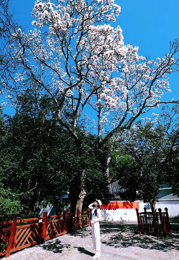 在泰顺仕阳万排茶园上排村邂逅了一棵两百年树龄的白玉兰树,正值花季,蓝天白云下洁白的花朵绽放着光芒,美得就像一幅画!