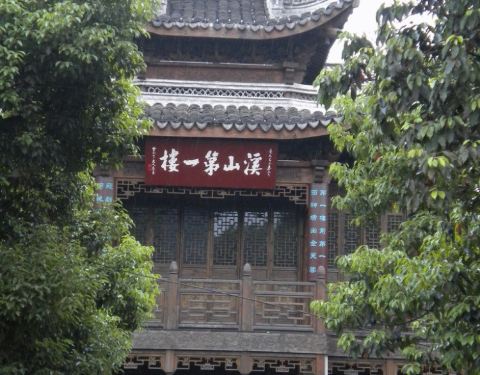 溪山第一楼在嵊县城关鹿胎山东南麓,前临孝子坊,为全城登临之胜。