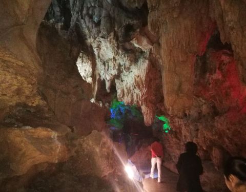 估计一个人能吓到,比凤凰谷长,洞里非常凉爽,都是钟乳石,除了可以在2个洞里走走,基本没有别的可以走的今天来没有要 门票,洞里有一段比较黑,估计一个人能吓到,比凤凰谷长,洞里非常凉爽,都是钟乳石,除了可以在2个洞里走走,基本没有别的可以走的。