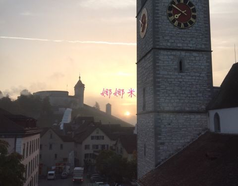 从酒店的窗户看出去正好能看到这座城堡,城堡在一座种满葡萄树的小山坡上,应该是小镇的制高点。沙夫豪森没什么特别的景点,所以就爬上去看了看,里面像洞穴阴森森的,可以怕吸血鬼片那种,顶上有洞光束进来,画...