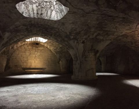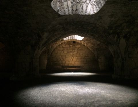 城堡底层是摄影的好地点。从门洞和顶部的透气窗投射进来的光线,加上内部的灯光,构成一幅奇幻的画面。