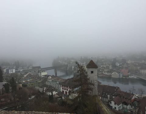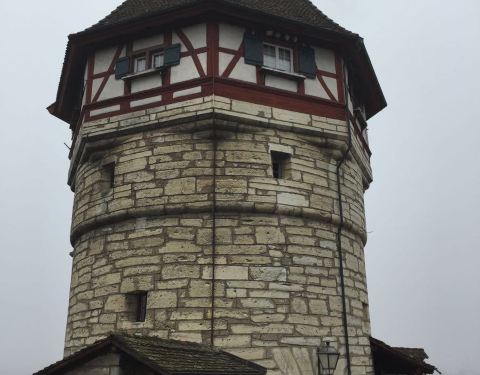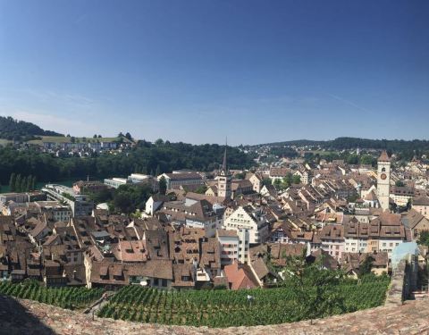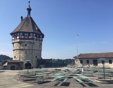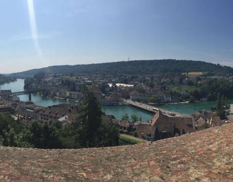 米诺城堡位于沙夫豪森城中,靠近河边的位置。整个城堡感觉是作为防御工事建造的,内部没有什么东西,登上城堡顶部,可以看到非常漂亮的莱茵河穿城而过的景色