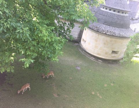 古堡外围墙内养了梅花鹿,里面就是防御工事。沿着旋梯到达顶层即可看到城市全景。