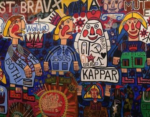原生艺术馆以展出让·杜布费(Jean Dubuffet)收集的作品为主,陈列着精神病患者,这些作品充分体现了这个美术馆的名字——艺术(Art Brut)。非同寻常的视觉震撼馆内所有的作品都充满了不同寻常的强烈视觉震撼,其中醒目的是阿洛伊斯·科尔巴的巨幅画作,从三四层楼高的顶部垂挂下来,画面的主色被明黄、宝蓝、橙红占据,而画中反复出现着一对对相拥的恋人。而18世纪时一位完全失明的女性靠着手指所感受到的颜色画出来的作品,神秘的色彩和幻想的构图,令人捉摸不透。此外,还有精神病患者在隔离病房中所画的画、杀人犯在禁闭室里雕在墙上的图案等。