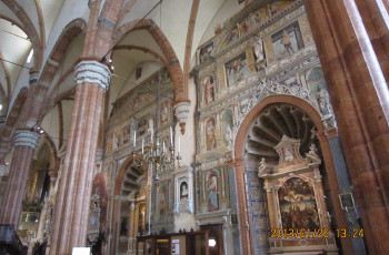 里面的壁画和雕塑都是美轮美奂,完工于15世纪,是维罗纳市内最古老的砖造教堂之一