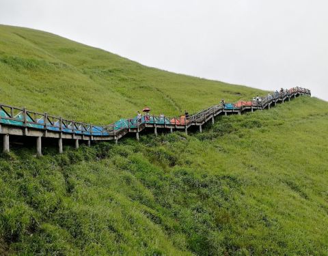 明月山高山草甸在明月山顶左侧,右侧是去栈道,风景很不错,不过天气不好时候不建议去,可以在高山草...