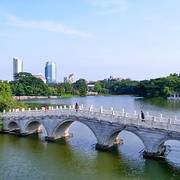 东湖公园地处蓬江区港口路22号,是一个集自然风光、人文景观、娱乐休闲于一体的综合性公园。公园占地面积约50公顷,其中湖水面积达20公顷。园内湖光山色,绿树成荫,拥有丰富的植物种类,绿化覆盖率高。湖中有多个小岛,通过桥梁相连,形成了独特的景观。