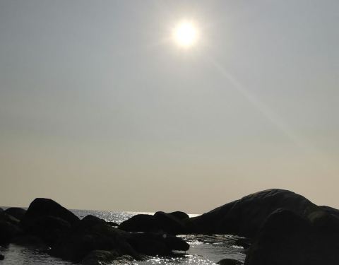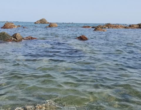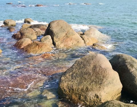 吉兆湾以石多湾多著称,在松软的沙滩上漫步,看着纯净的海水是很好的享受。