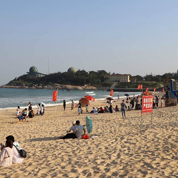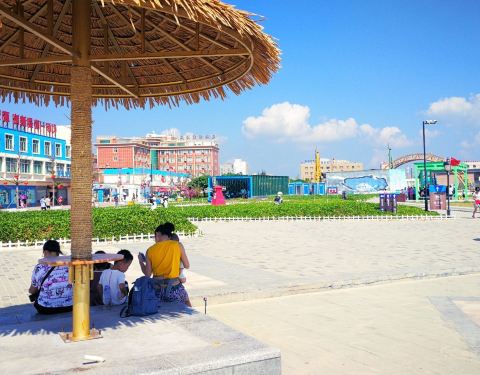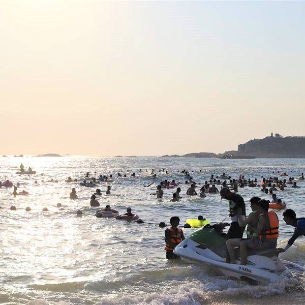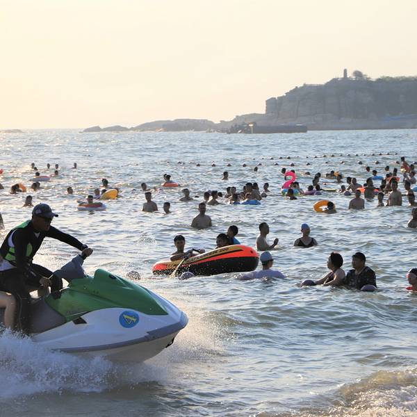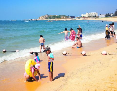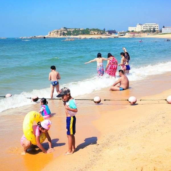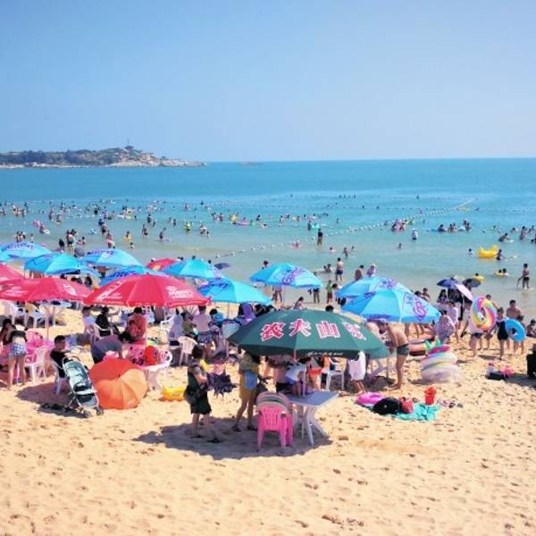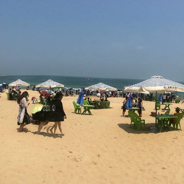 我是暑假的周五来的,海里已经很拥挤了,如果有条件的话还是挑周一到周四的时间估计会好些,不过不影响心情如果订的酒店金的话建议直接换好泳衣再过来(不用害羞,整条路的行人都是怎么走的,哈哈哈),海滩区有寄存柜、换衣间、冲洗间,大概好像是10元/人,看各自所需吧。