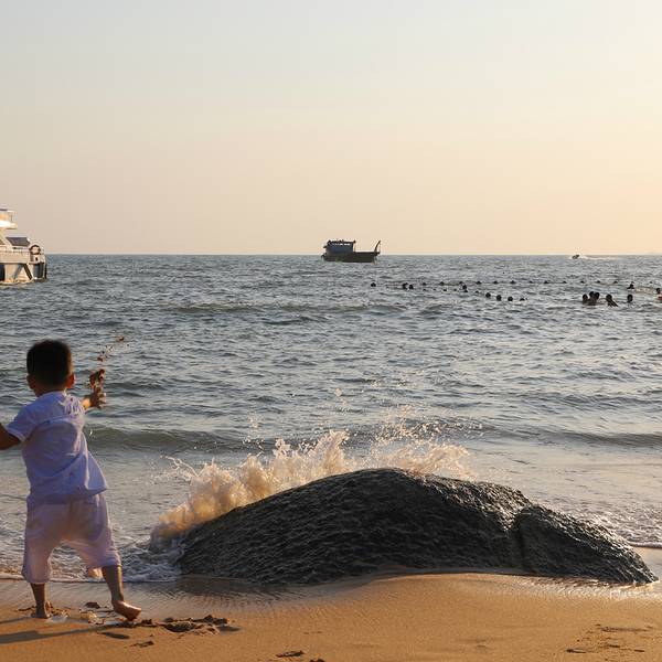 红海湾是第16届广州亚运会的帆船帆板项目比赛场地,也是影视剧垂青的取景地,有中国最美海湾的美誉。门票是16元,开放时间为09:00-19:00。这里沙滩蜿蜒连绵,有57公里的漫长海岸线。我们是国庆节期间到红海湾游玩,虽然不少游客在海里游泳,但是没有想象中的多。玩水的同时,发现许多有趣的瞬间,如岸边的小孩看着涌来的潮水格外兴奋,蹦蹦跳跳的~~景区内还有大片的繁茂的草坪,我们玩累后在草坪旁休息随手拍照。座椅上有许多可爱的卡通人物,引起游客们争相合影。