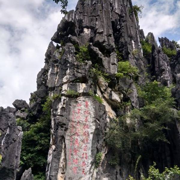 春湾石林位于阳春市,距龙宫岩600米,是一大片石林,由"百页剑门"、"马头峰"等6座石山峰峦组...春湾石林位于阳春市,距龙宫岩600米,是一大片石林,由"百页剑门"、"马头峰"等6座石山峰峦组成,最壮观的是石剑峰(也叫百页剑门),如刀枪剑戟,挺拔陡峭、直插云天。著名诗人韦丘吟为"万把青铜剑,锋芒指夜天,将...春湾石林位于阳春市,距龙宫岩600米,是一大片石林,由"百页剑门"、"马头峰"等6座石山峰峦组成,最壮观的是石剑峰(也叫百页剑门),如刀枪剑戟,挺拔陡峭、直插云天。著名诗人韦丘吟为"万把青铜剑,锋芒指夜天,将军何处去,战马系槽前",广为传诵。一片石柱山平地而起,山有小口,入口狭窄,仅容一两人进入。这片石柱的前面,一根独立的长柱正好挡在山的入口,真是一夫当关万夫莫开。这里就是百页剑门了,一片片扁形石柱如刀似剑,或独立或抱成团,护住了背后的石林。在上个世纪80、90年代和二十一世纪初,石林是阳江唯一的外拍影视基地,国内多部电影、电视剧就在这里取景。可能是看过一些在这里拍摄的影片的缘故,心中甚是好奇。和同伴走进这块清幽的土地,虽然不复当年的光景,但走走停停,脑海中总是会浮现一些熟悉的画面:战马在空旷的土地上奔跑,恋人骑马穿越山谷。 展开