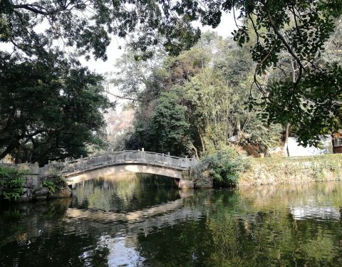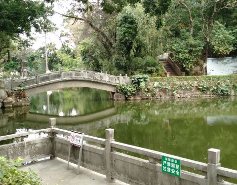 东莞人民公园据说建立几十年了,算一个比较老的公园,面积很大的,出入口好几个,这个是东门广场这边出入口的湖畔,有石拱桥呢,看着风景还不错。