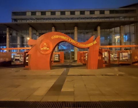 凌晨的中心广场很安静的,快国庆了,这里有布置,装扮得比较好看。国庆还有活动,展览,可以来看看。中心广场很大,绿化不错,晚上广场舞很厉害。