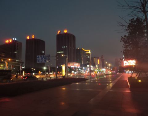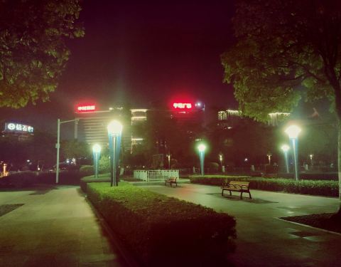 中心广场晚上狠热闹,除了广场舞,还有来来往往的行人