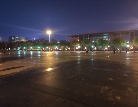白天晚上风景各不同。白天人不多,感觉晚上比较多中心广场是东莞新城市中心,广场很大,有图书馆大剧院展览馆等,还有喷泉,地处繁华商业中心隔壁。白天人不多,感觉晚上比较多。白天晚上风景各不同。