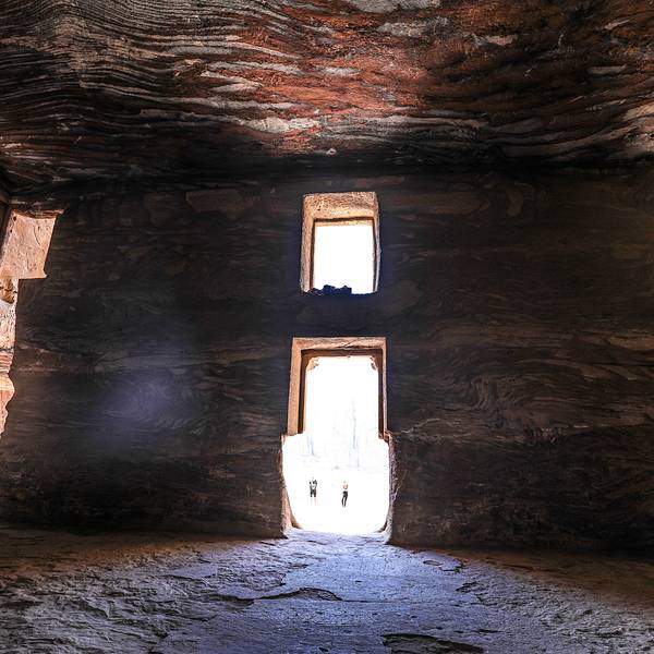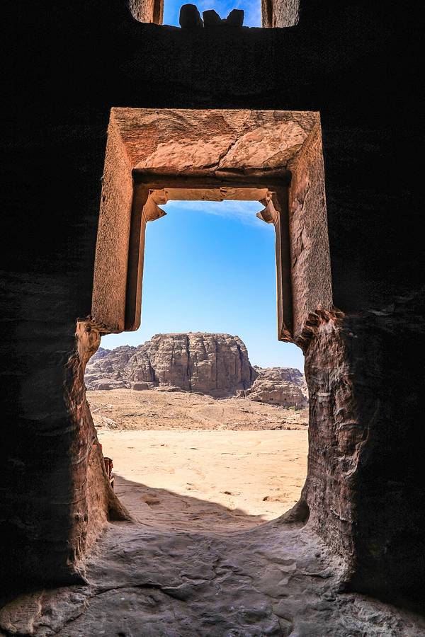 皇家陵墓建于悬崖峭壁上,主墓室非常阔大,正方体结构的墙身、天花,岩层色彩鲜明如油画,惊叹纳巴泰人的巧夺天工妙用自然与建筑的美学。