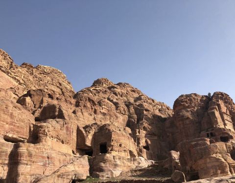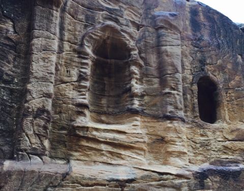在佩特拉古城行走的道路旁,可以看到大大小小各种各样的洞穴,这些便是当年的各个坟冢所在。